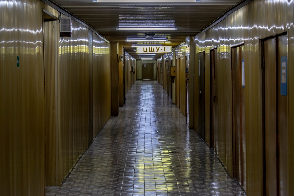 Korridoren sista biten till Reaktor 4 är kanske inte lika utsmyckad som när vi började vid reaktor 1.