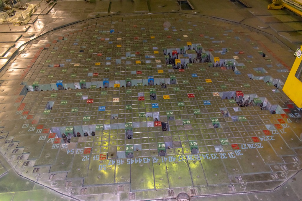 På toppen av reaktor 1 samma typ RBMK-1000 som resten av kraftverket. hela locket väger cirka 1500 ton och det locket flög upp på reaktor 4 när explosionen hände, ligger idag på högkant över reaktorn.