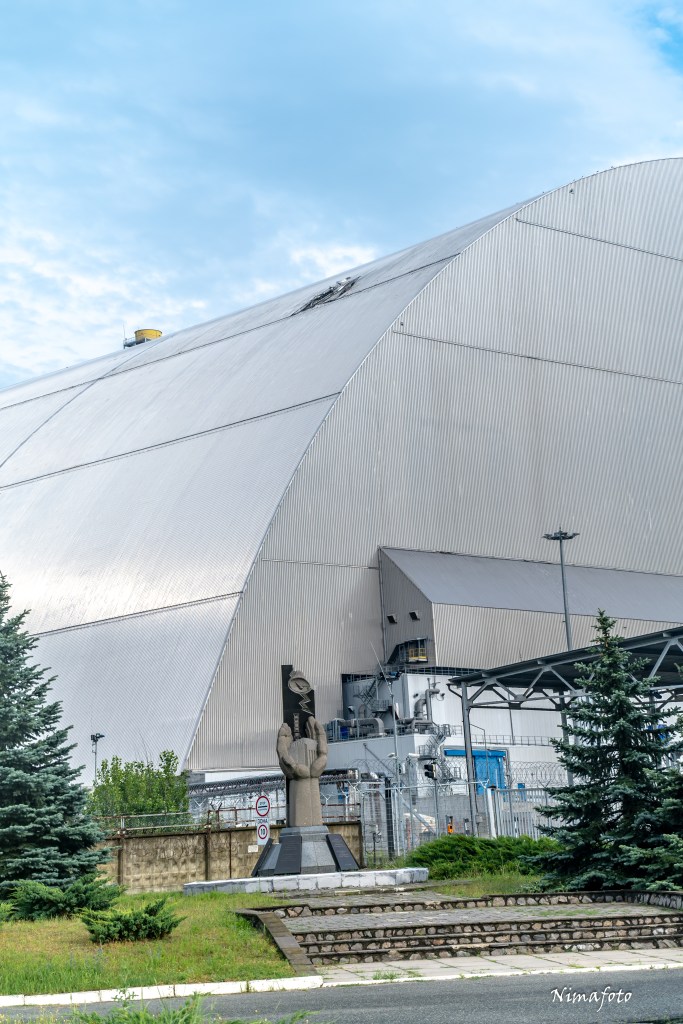 Så här ser innerslutningen ut idag, kom på plats 2017 och ska hålla i 100år under den tiden är tanken att man ska demontera reaktor 4 på radioaktivt material.
