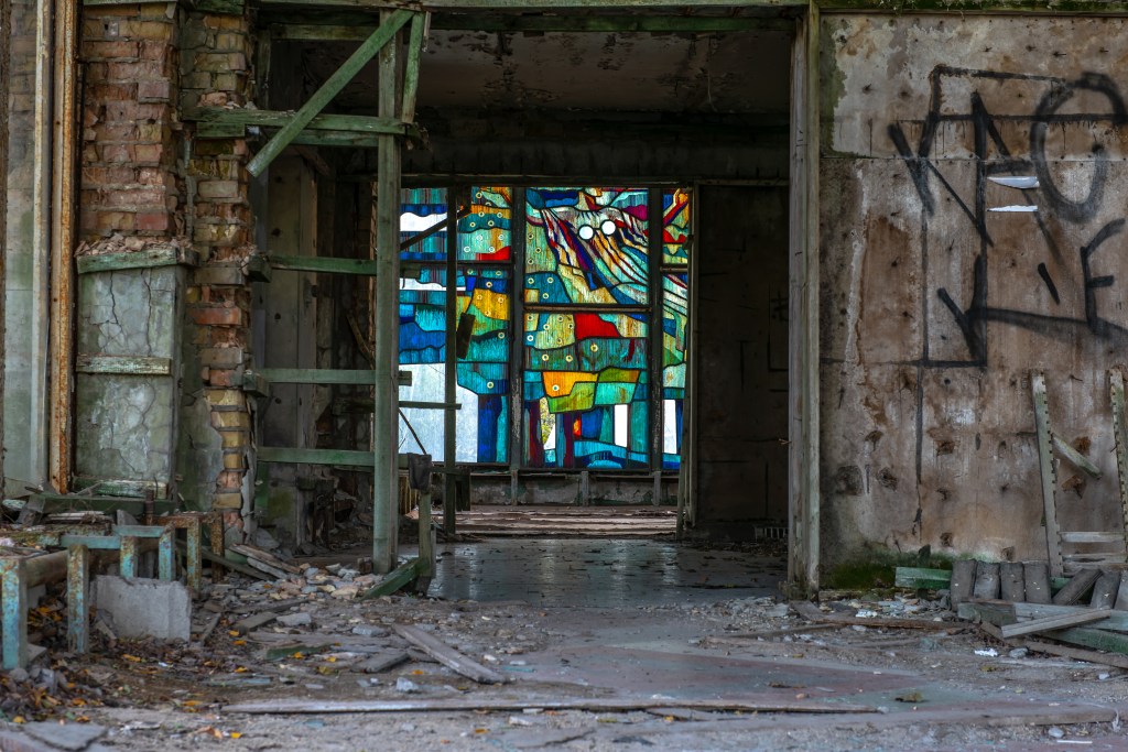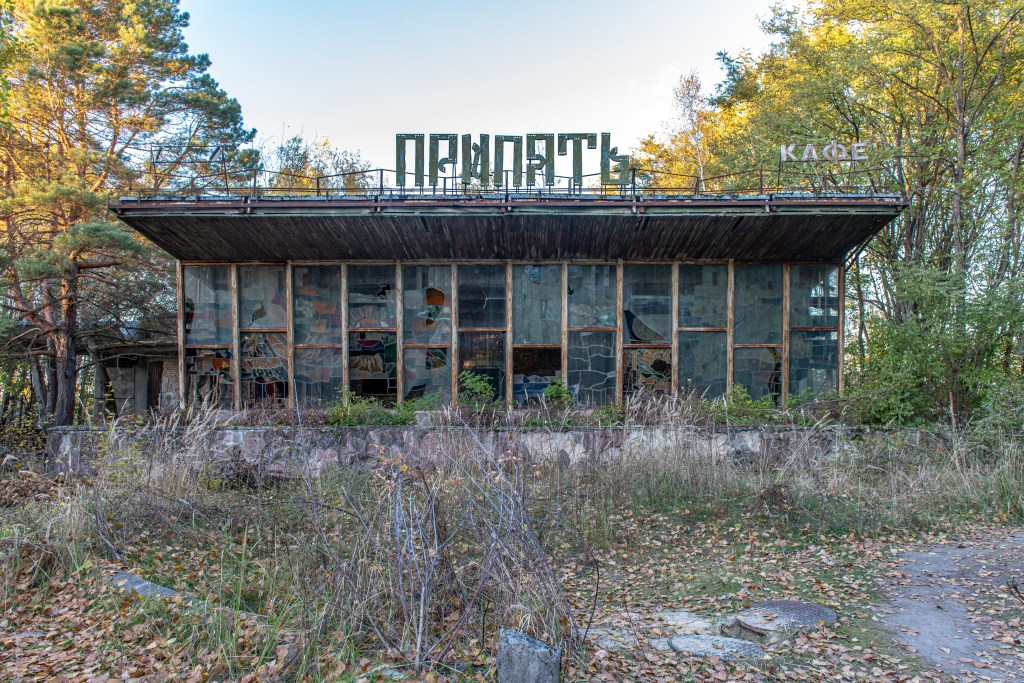 Cafét i Pripyat fotograferat dels Okt 2021 samt Juli 2025, Naturen tar över på 4 år…
