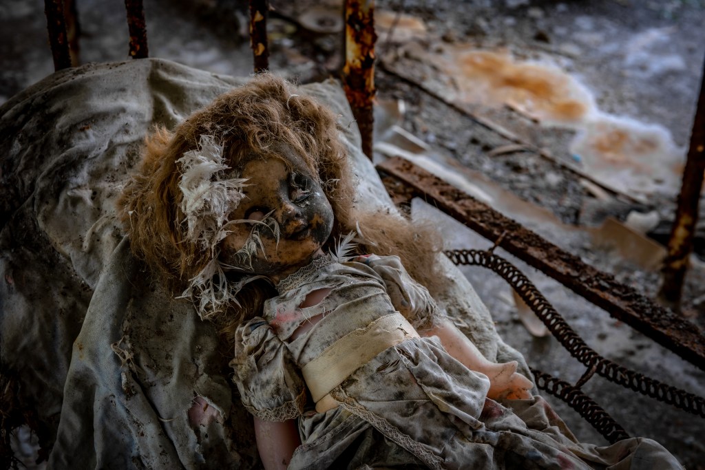 Lite spooky och hitta denna dockan i denna miljön.
